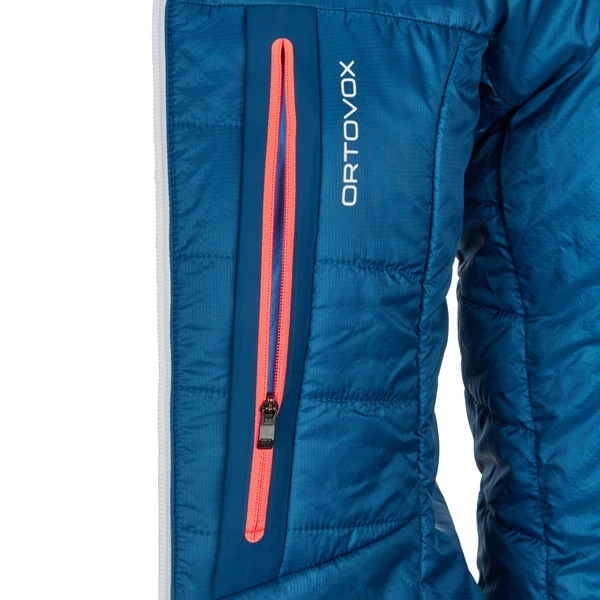 Das recycelte Außenmaterial hat einen angenehm weichen Griff, ist aber dennoch schön robust. Es ist winddicht und wasserabweisend – so bist du vor stürmischen Böen und leichtem Regen oder Schnee bestens geschützt. Als Füllmaterial kommt eine recht dünne, aber gleichzeitig hervorragend isolierende Woll-Füllung zum Einsatz. Die Füllung sorgt auch beim schweißtreibenden Einsatz für ein angenehmes Körperklima, denn sie nimmt große Mengen an Feuchtigkeit auf ohne sich dabei nass anzufühlen.