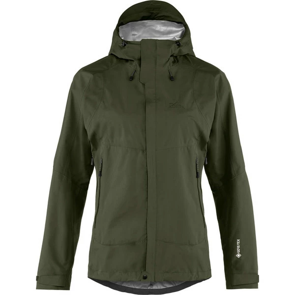 Die Regenjacke besteht aus leichtem Gore-Tex Paclite, das dir zuverlässig Regen und kaltem Wind vom Leib hält. Das Material ist stark atmungsaktiv, sodass du auch auf herausfordernden Wanderwegen ein angenehmes Klima in der Jacke hast. Gerätst du dennoch mal ins Schwitzen, sorgen die seitlichen Belüftungs-Reißverschlüsse dafür, dass Wärme und Feuchtigkeit schnell nach außen gelangen können. Die Reißverschlüsse befinden sich nicht direkt im Achselbereich, sondern sind etwas tiefer an den Seiten angebracht. Dort stören sie weniger, gerade wenn du einen Rucksack trägst.