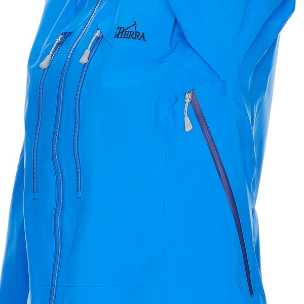 Die Jacke überzeugt mit vielen praktischen Details. So wie die Einschubtaschen, die auch mit einem Becken- oder Klettergurt gut zu erreichen sind und die langen, seitlichen Belüftungsreißverschlüsse, die so tief angebracht sind, dass du die Taschen einer darunter liegenden Jacke bequem erreichen kannst.