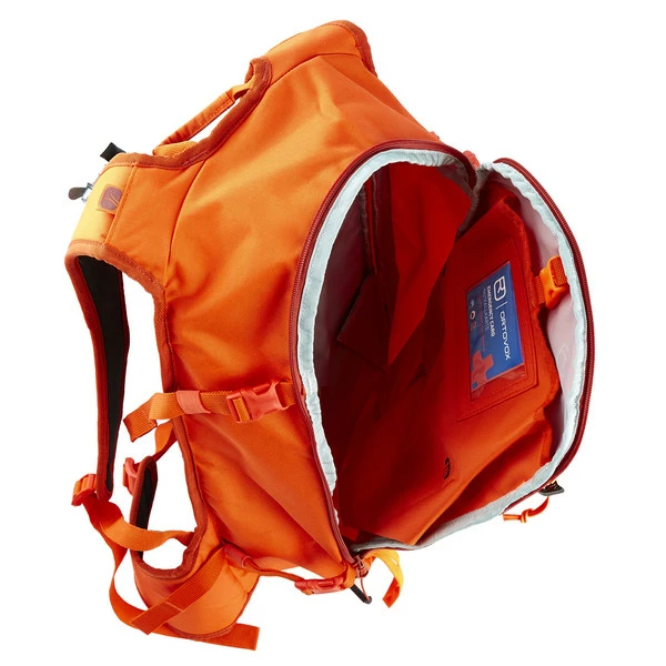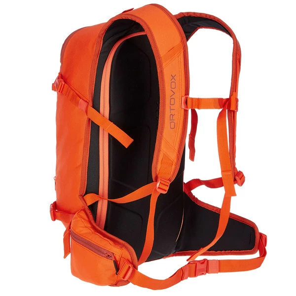 Der Cross Rider 20 bietet eine sehr gute Aufteilung und vielseitige Möglichkeiten, deine Ausrüstung zu verstauen. Das geräumige Hauptfach ist sowohl über die Front als auch den Rücken zu erreichen. Lawinenschaufel und Sonden können schnell zugreifbar in dem Frontfach untergebracht werden. Hier findest du auch einen kleinen Notfallplan für den Ernstfall. Durch die bewusst hell gestaltete Innenseite des Skirucksacks kannst du Ausrüstungsgegenstände leichter finden und ersparst dir langes Rumkramen. Auf dem flachen Hüftgurt ist ein kleines RV-Fach für Wertsachen positioniert. Die in den Brustgurt integrierte Signalpfeife kann in brenzligen Situationen dabei helfen, auf dich aufmerksam zu machen.