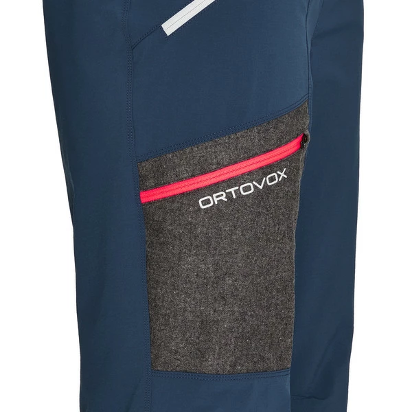 Das Außenmaterial aus 2-Wege-Stretch und höchst atmungsaktiv und mit einer PFC-freien, wasserabweisenden Beschichtung ausgerüstet. Auf der Innenseite sorgt die Rip-Struktur für ein gutes Feuchtigkeitsmanagement und verbesserte Isolation. Ein besonderer Blickfang ist die Kartentasche in Loden-Optik auf dem Bein! Durch eine PU–Membran bleibt die Tourenkarte gut geschützt vor Schnee und Feuchtigkeit und außen verleiht traditioneller Loden vom österrischichen Produzenten Steiner der Cevedale Pants ihren besonderen Look.